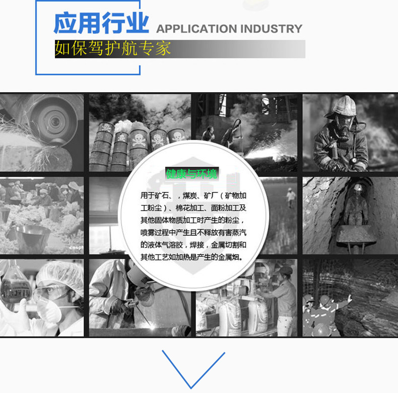 選用推薦:適用于霧霾,面粉加工廠,礦廠(礦物加工粉塵),棉花加工,五金鑄造,汽車尾氣中產(chǎn)生的粉塵和部分有毒氣體環(huán)境可選用濾棉搭配濾毒盒進行防護