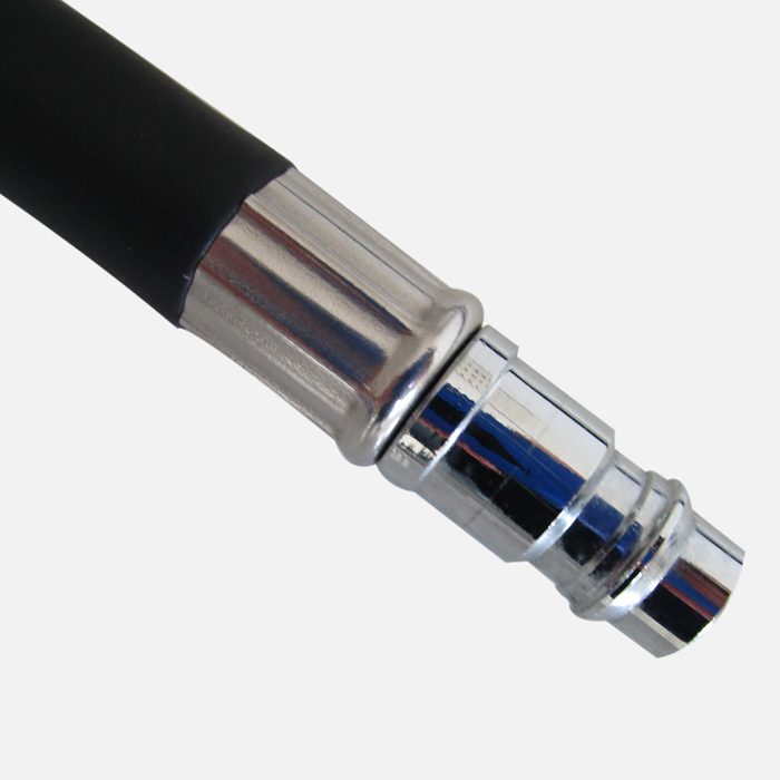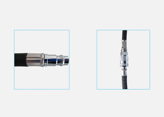 中壓管:它是三層結(jié)構(gòu)的織物增強膠管,內(nèi)層和外層為耐老化阻燃橡膠、中層為織物編織層,起到增強膠管硬度的作用 。它與快速接頭組成空氣輸出軟導(dǎo)管,其一端連接供氣閥,另一端連接減壓器。
