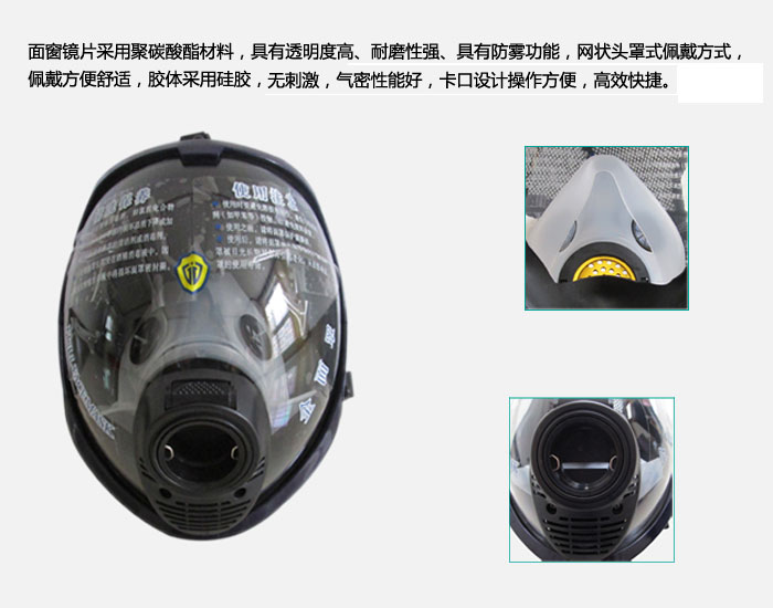 2.把全面罩上的長系帶套在脖子上,使用前全面罩置于胸前,以便隨吮佩戴,然后將快速接頭接好。