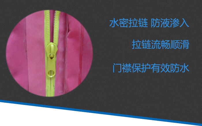 1. 高密閉性水密拉鏈 門(mén)襟保護(hù) 尼龍搭扣粘連 提供高端雙層防護(hù) 確;瘜W(xué)液體不滲透 拉鏈流暢順滑 手感舒適
